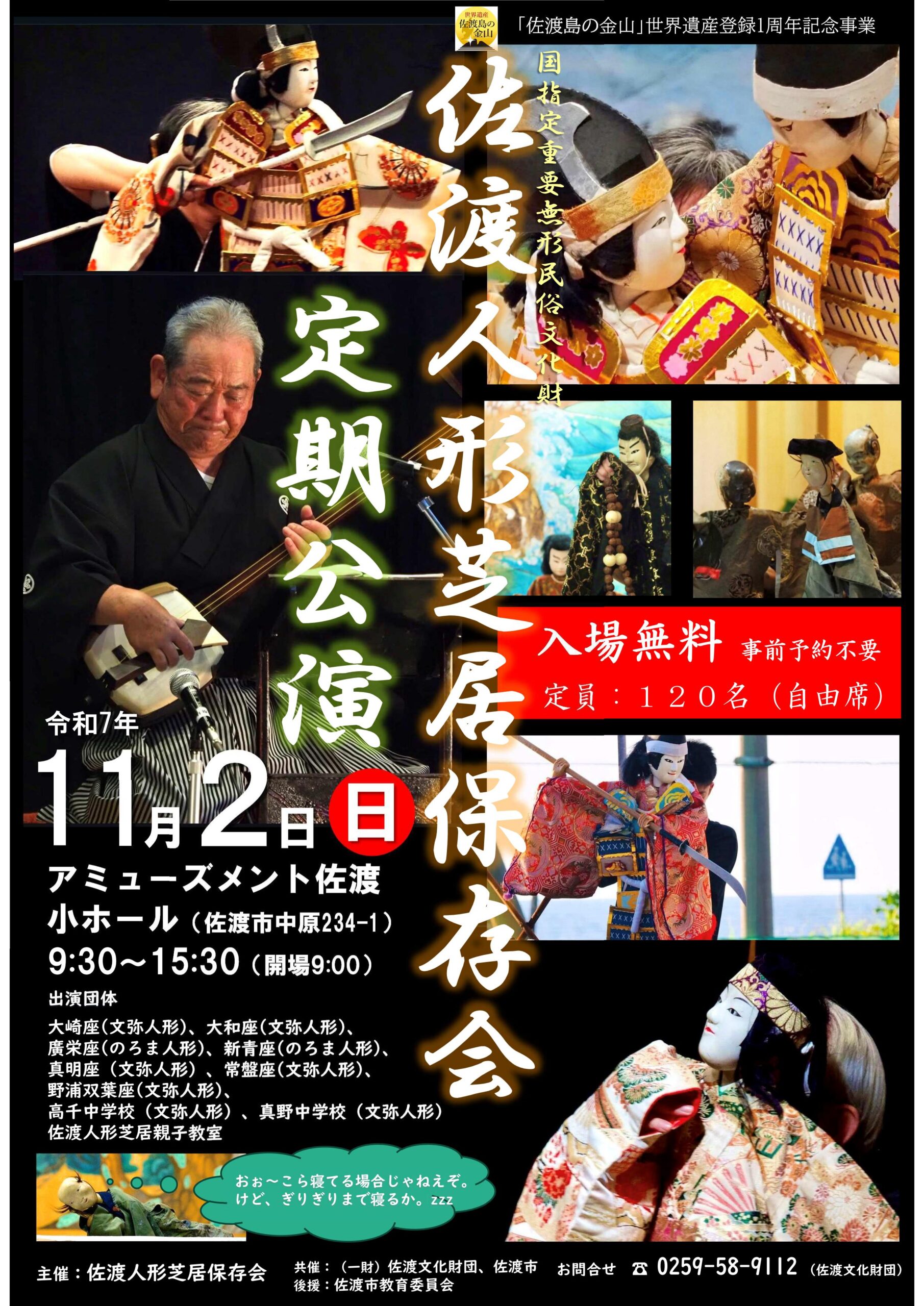- 11/2㈰「佐渡人形芝居保存会定期公演」が開催されます