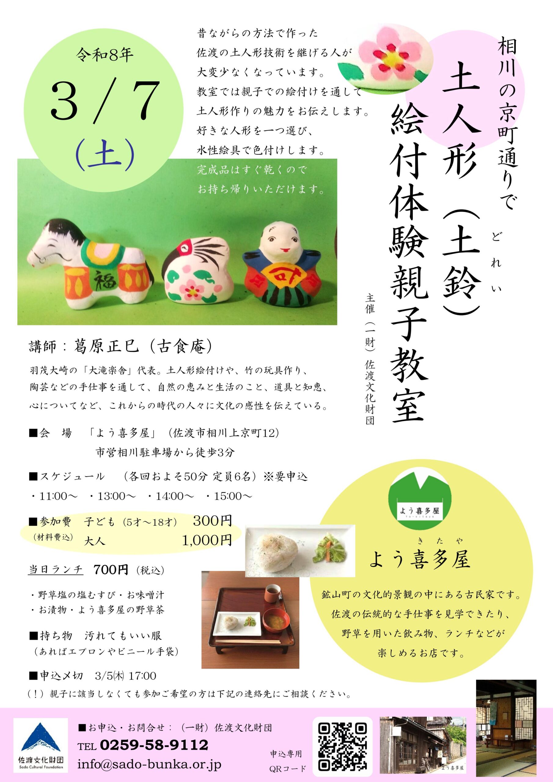 - 3/7(土)土人形絵付け体験親子教室を開催します